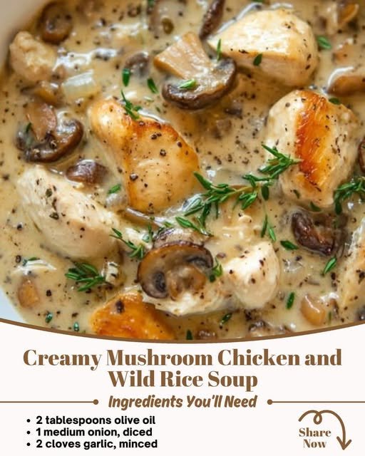 Ladle the soup into bowls and serve warm. Enjoy the rich, hearty flavors of this Creamy Mushroom Chicken and Wild Rice Soup!