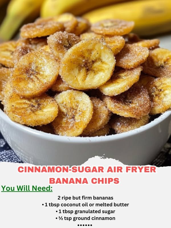 Enjoy your Cinnamon-Sugar Air Fryer Banana Chips—a quick and tasty snack perfect for any time of day! 🍌