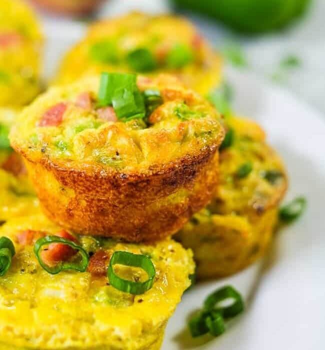 - Spoon the egg mixture into the muffin tin, filling them almost full (they will puff up while cooking).