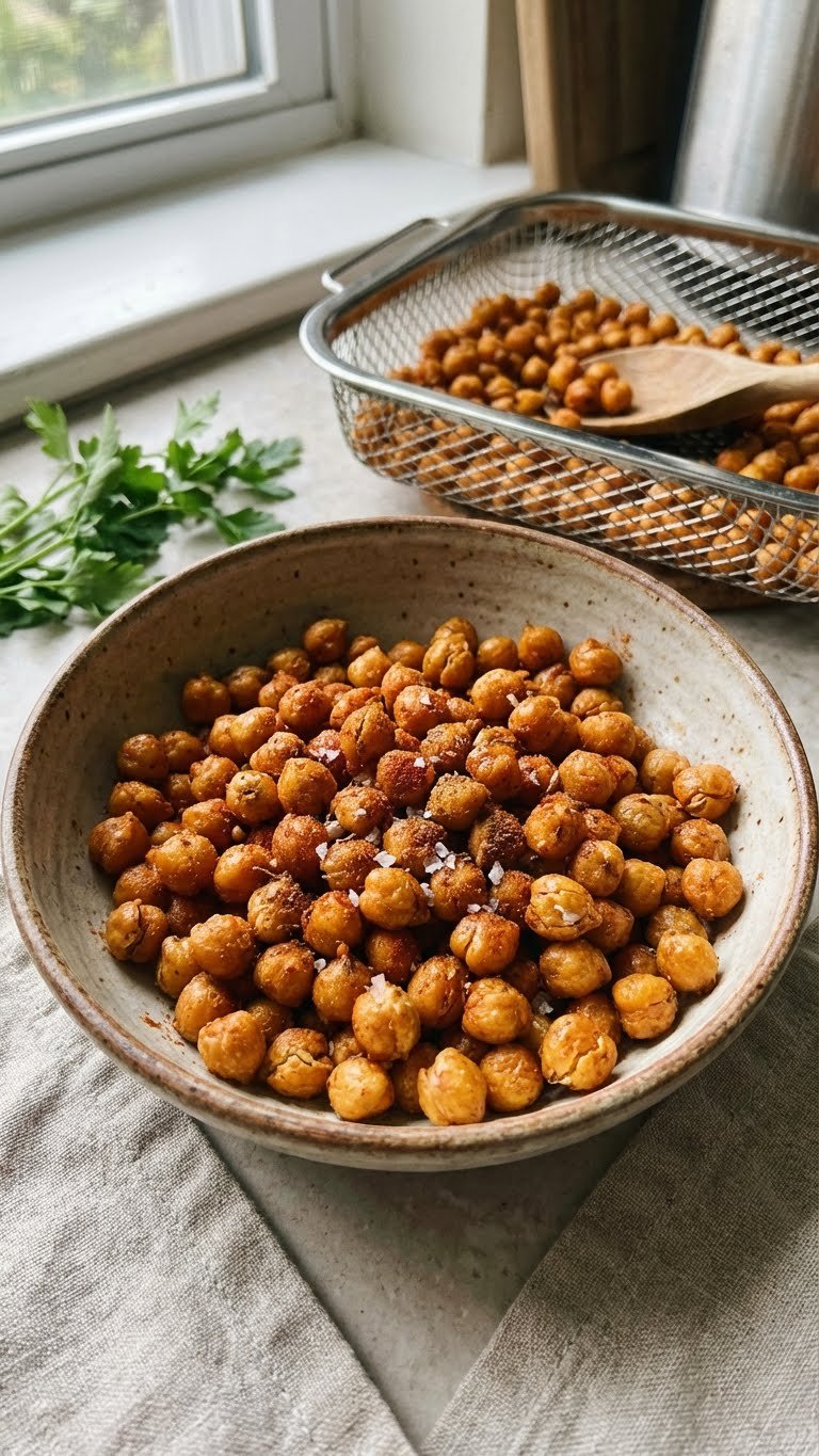 Pat chickpeas completely dry with a kitchen towel (very important for crispiness). -