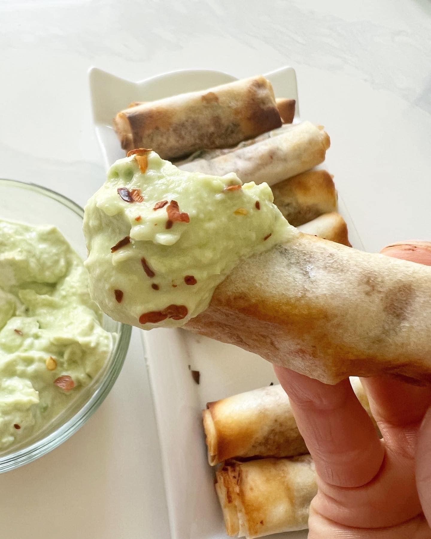 - Dip; 1 avocado mashed, 2 tbs plain Greek yogurt and a squeeze of 1/4 lime. Sprinkle of chili flakes.