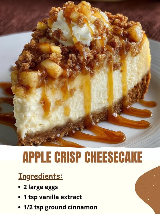 Apple crisp cheesecake has a thick graham cracker crust, tangy vanilla cheesecake, cinnamon apples and oatmeal crumble on top. It’s extremely creamy with the perfect apple cinnamon flavor. Top with a drizzle of salted caramel for the ultimate fall dessert.