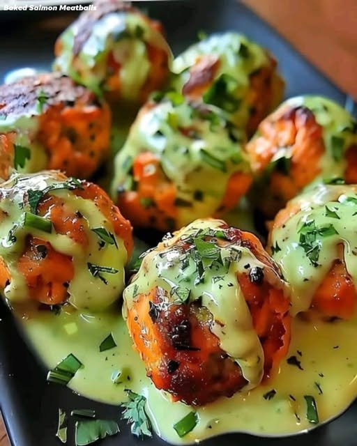 🥑 Baked Salmon Meatballs with Creamy Avocado Sauce 🥑