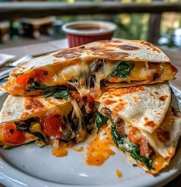 Enjoy your delicious and cheesy spinach mushroom quesadillas!