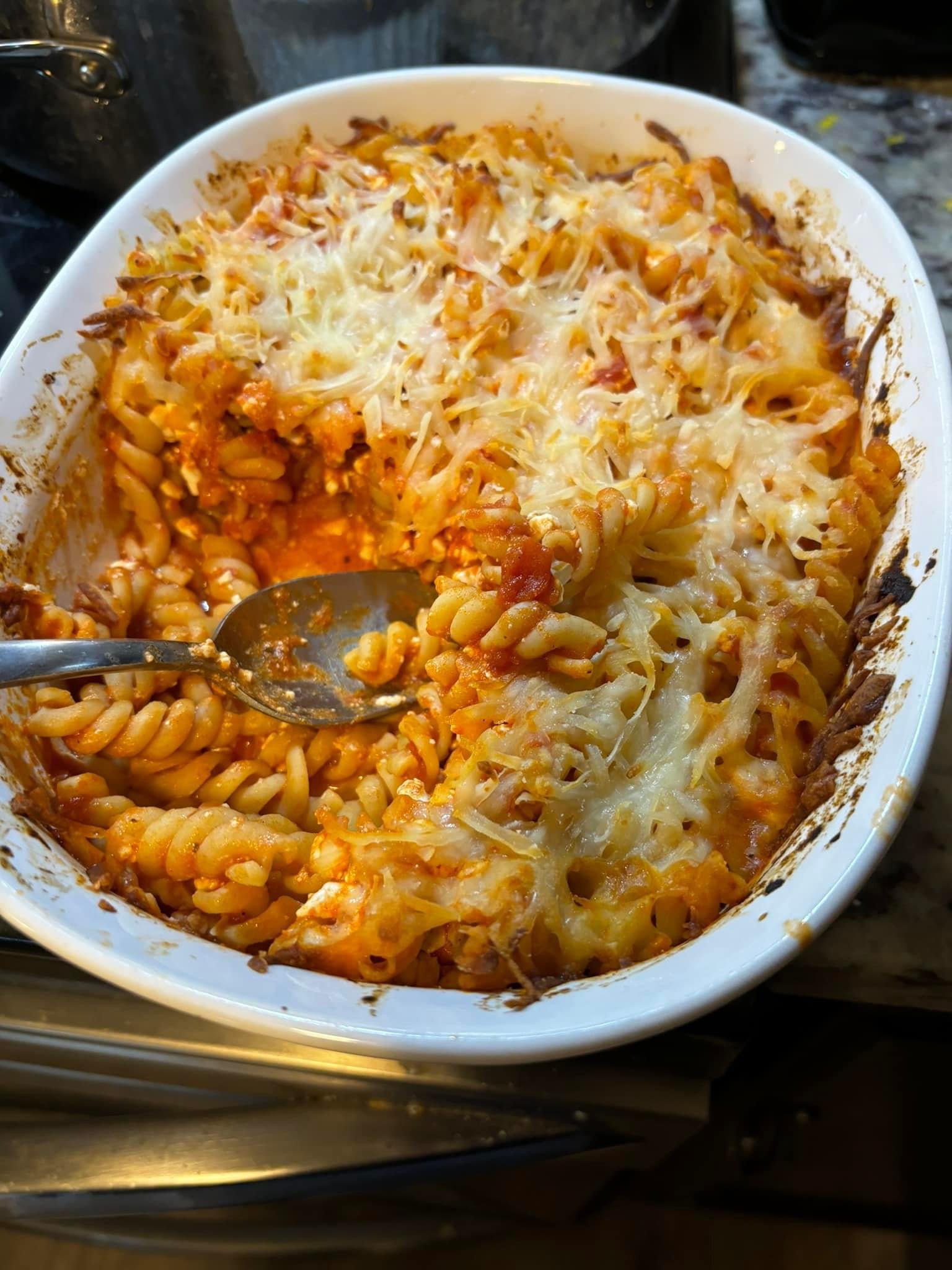 - I just mixed it all together except mozzarella cheese and just sprinkled that on top, baked at 375 for 30 min