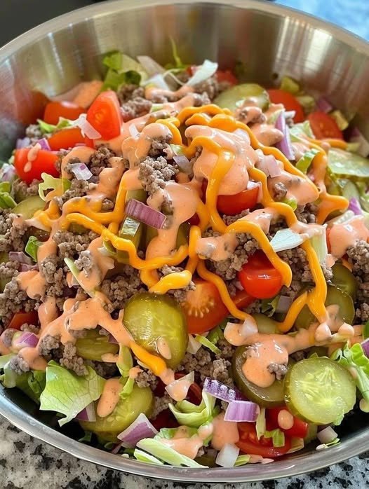 The Big Mac Salad gives you all the iconic flavors of a Big Mac—juicy beef, crisp lettuce, pickles, cheese, and that creamy “special sauce”—without the bun. It’s hearty, satisfying, and perfect for low-carb, keto, or lighter comfort-food cravings.