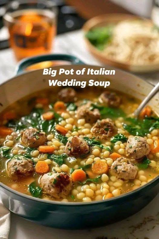 Enjoy this hearty and comforting Big Pot of Italian Wedding Soup, perfect for family gatherings or cozy nights!