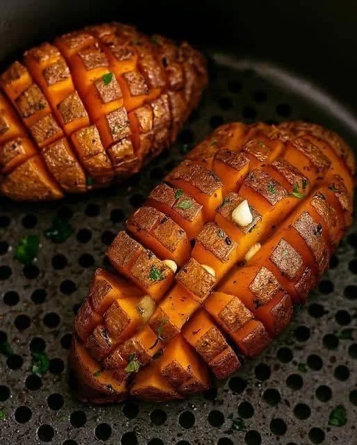 Blooming sweet potatoes are thinly sliced (accordion-style), brushed with garlic butter, and roasted until crispy on the edges and tender inside. They’re visually stunning, naturally sweet, and perfect as a side dish for holidays, weeknight dinners, or entertaining.