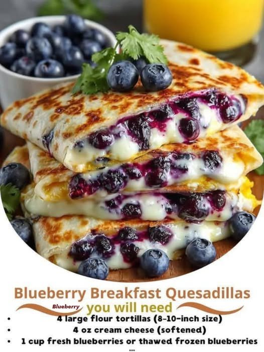 Crispy quesadilla filled with juicy blueberries, cream cheese, and hints of honey—perfect for breakfast.