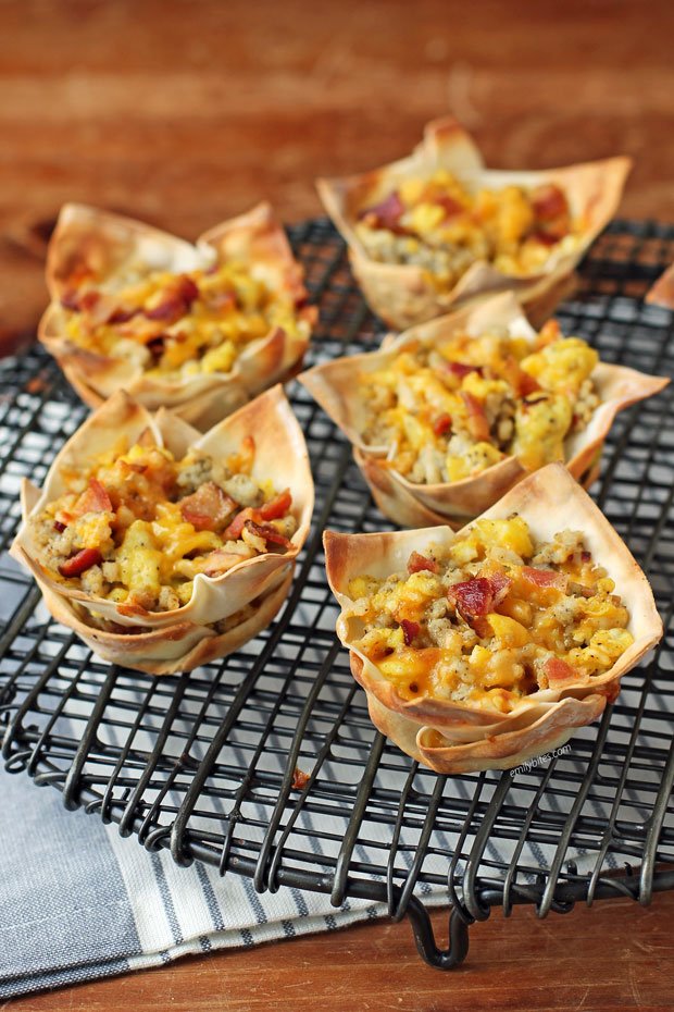 These Breakfast Wonton Cups are fully loaded with bacon, eggs, sausage and cheese – all your savory breakfast favorites!