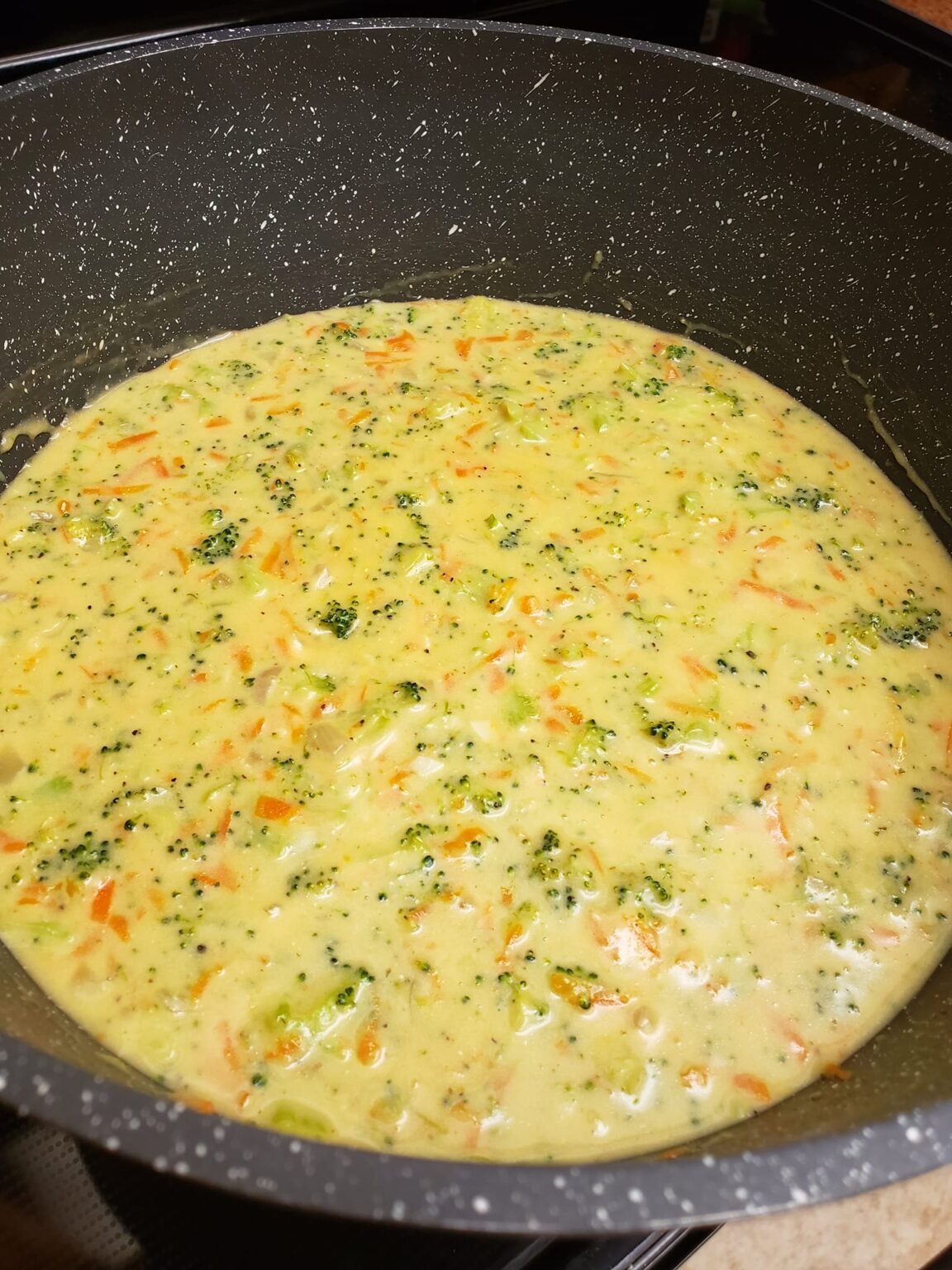 - Add the broccoli and carrots. Cook over low heat for 20-25 minutes or until the broccoli and carrots are tender.