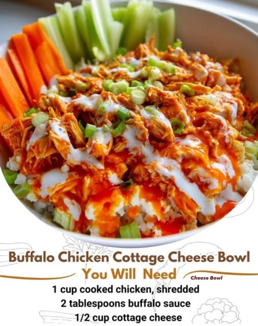 What makes the flavor really pop is the homemade buffalo ranch dressing. With just four ingredients—Greek yogurt, light mayo, Frank’s Red Hot Sauce, and ranch seasoning—you get that signature creamy, spicy combo. It’s light yet rich and sticks to every bite of chicken and veggie.