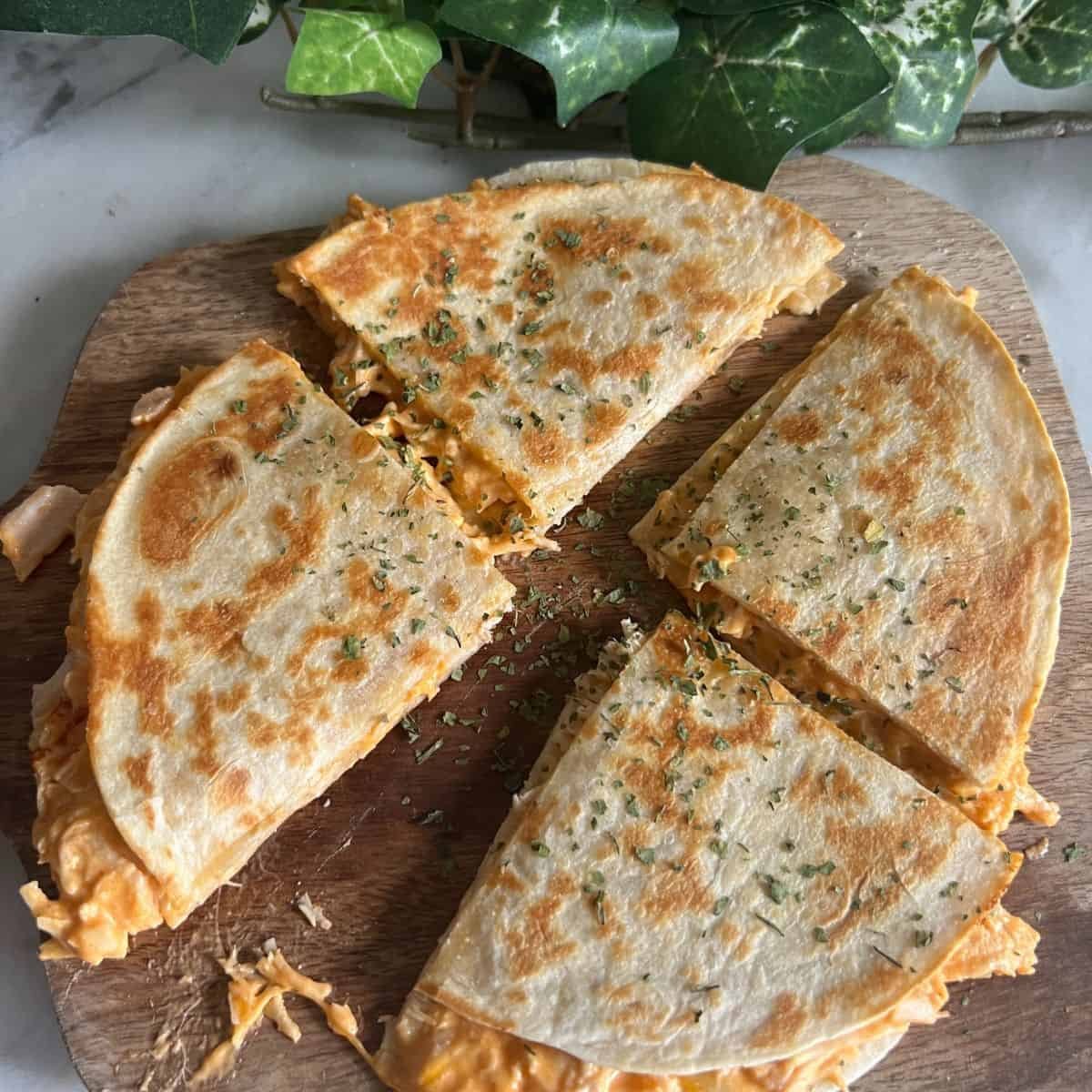 Once your buffalo chicken quesadillas are ready, you can serve them hot with your choice of toppings.