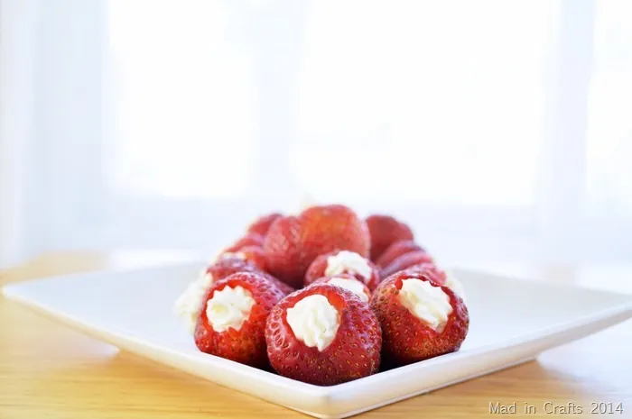 - Pipe mixture into the cavity of each hulled strawberry.