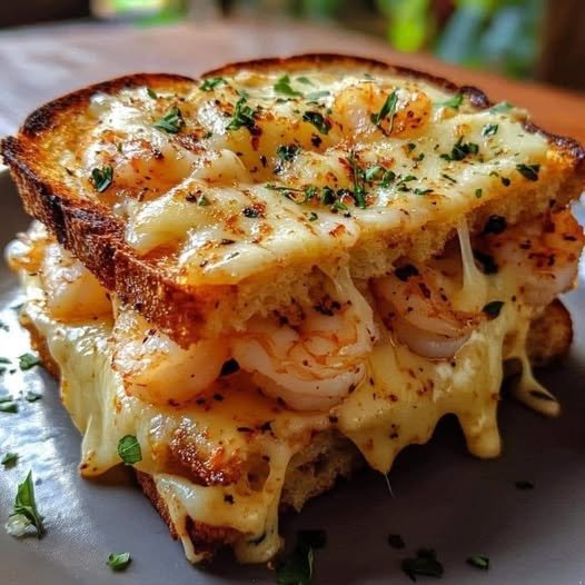 Experience a delicious twist on the classic grilled cheese with this Cheesy Garlic Bread Shrimp Grilled Cheese, perfect for a comforting meal or a special treat!