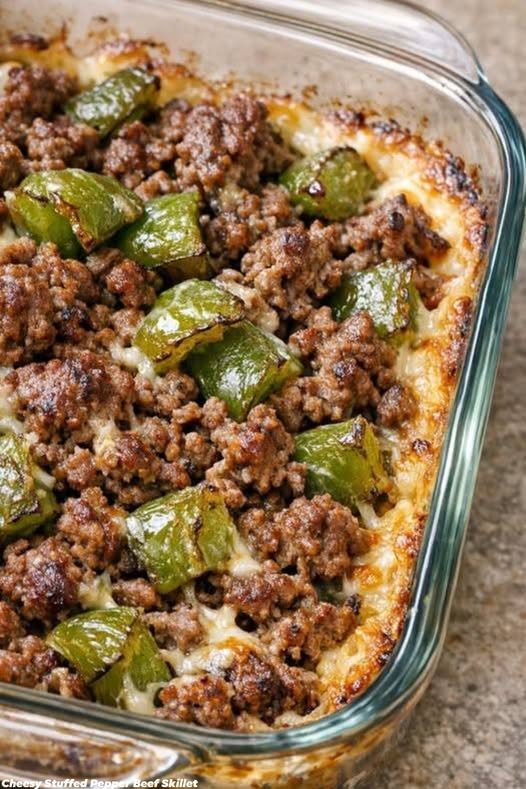 A hearty, one-pan comfort meal inspired by classic stuffed peppers—without the stuffing! Juicy ground beef, tender green peppers, rich marinara, and melty cheese come together in a quick, family-friendly skillet dish.