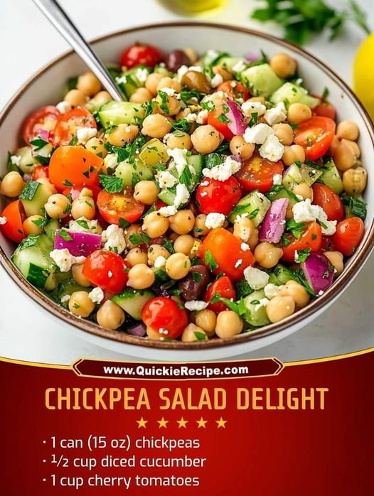 A refreshing Mediterranean salad combining savory chickpeas with fresh veggies and herbs.