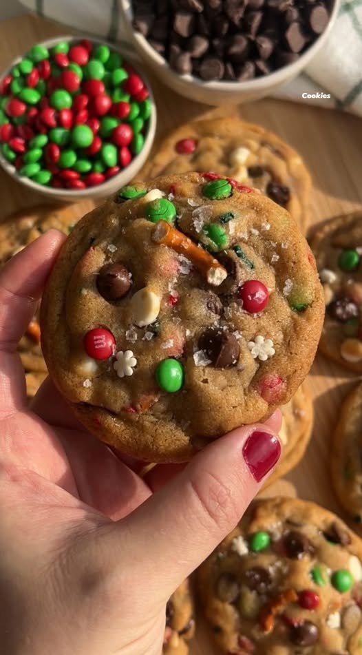 This recipe captures that perfect “salty-sweet” balance seen in your photo. It uses a brown sugar-heavy dough for a chewy texture and includes a mix of crunchy pretzels, festive M&Ms, and creamy white chocolate.