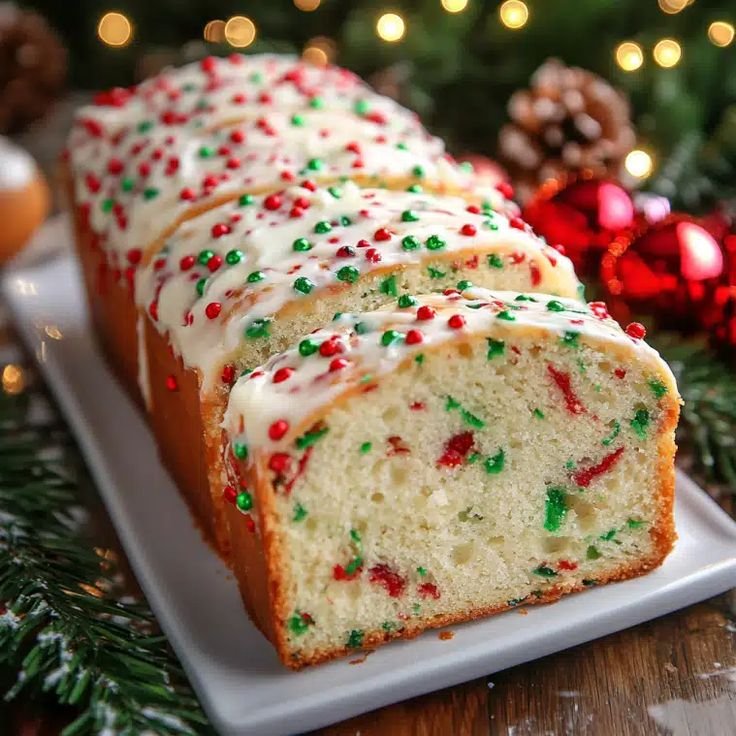This Christmas Sprinkle Buttermilk Bread is a soft, tender quick bread with a buttery vanilla flavor and festive pops of red, green, and white sprinkles throughout. Made with buttermilk for extra moisture, it’s perfect for holiday breakfasts, dessert, gifting, or serving with coffee and cocoa. No yeast required—simple, cozy, and cheerful!