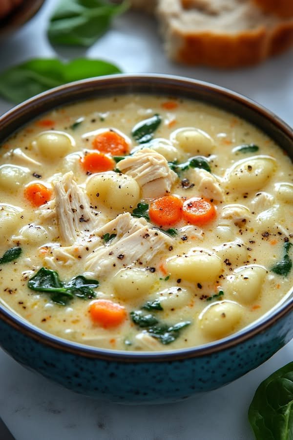 - Comfort Food Upgrade: The combination of tender chicken, pillowy gnocchi, and fresh spinach makes this soup a hearty yet refined comfort food classic.