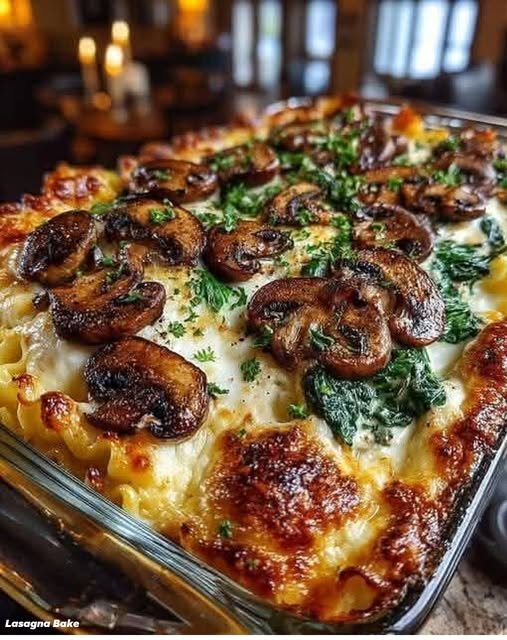 Cottage Cheese Mushroom & Spinach Lasagna Bake