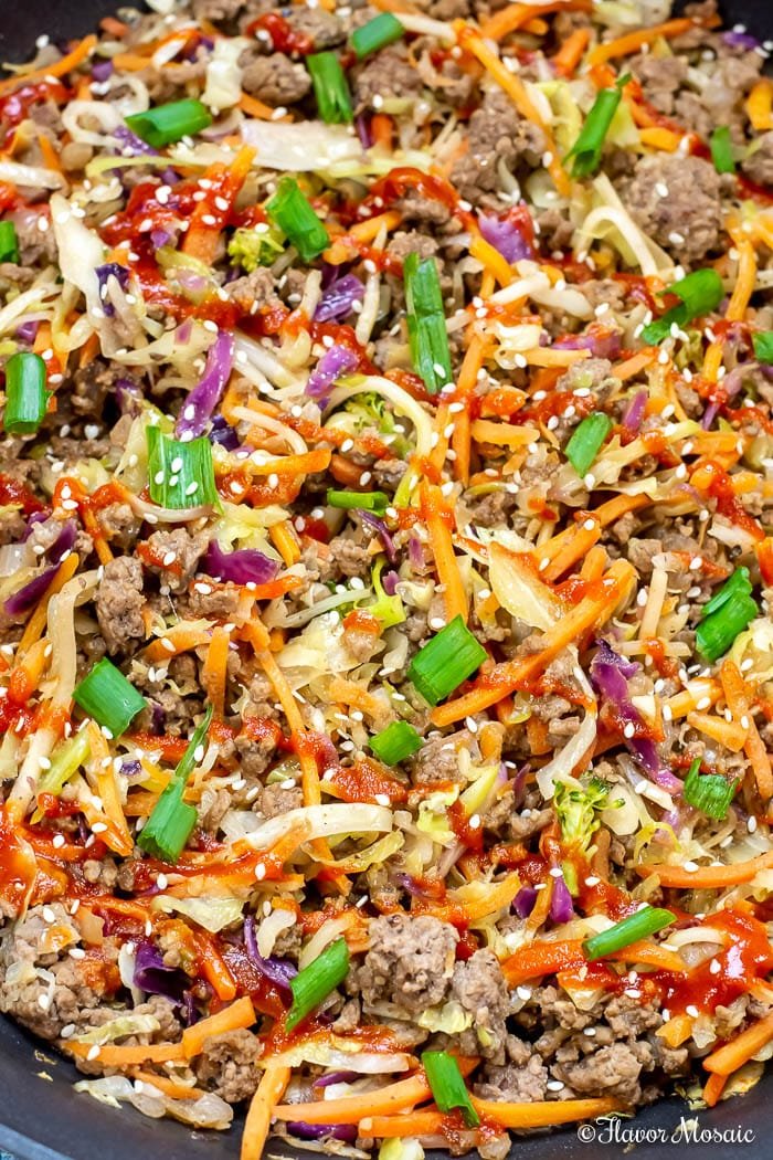 - Return the cooked chicken to the pan. Stir in sesame oil, soy sauce, vinegar, and sriracha. Season with salt and pepper and more sriracha as desired.