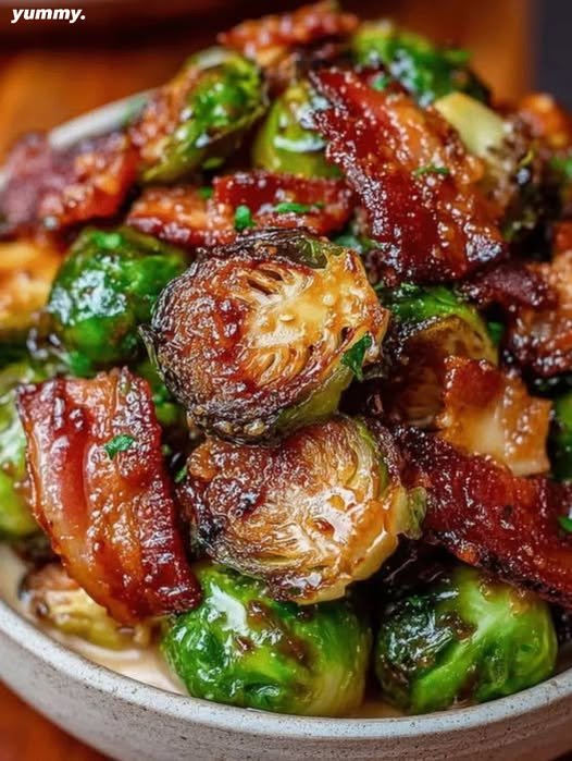 Crispy on the outside and tender inside, these Brussels sprouts are roasted with smoky bacon and finished in a luscious maple glaze. The combination of caramelized edges, salty bacon, and sweet maple syrup makes this dish irresistible — perfect for holidays, weeknight dinners, or when you need a quick gourmet side.