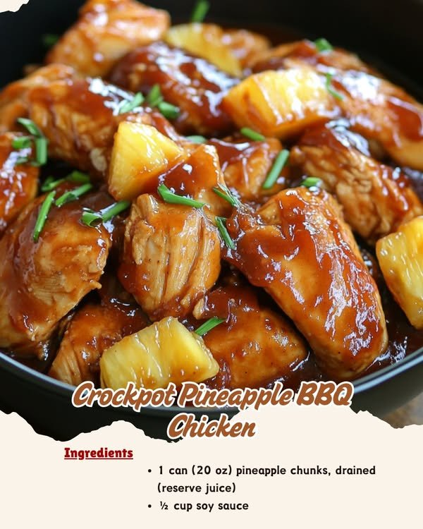 I’m so glad you’re here, because this recipe is about to become one of your absolute favorites. This Crockpot Pineapple BBQ Chicken is tender, juicy, and bursting with sweet and savory flavor—thanks to the magical combo of pineapple, BBQ sauce, and soy sauce. It’s one of those “dump and go” slow cooker recipes that gives you all-day flavor with just a few minutes of prep.