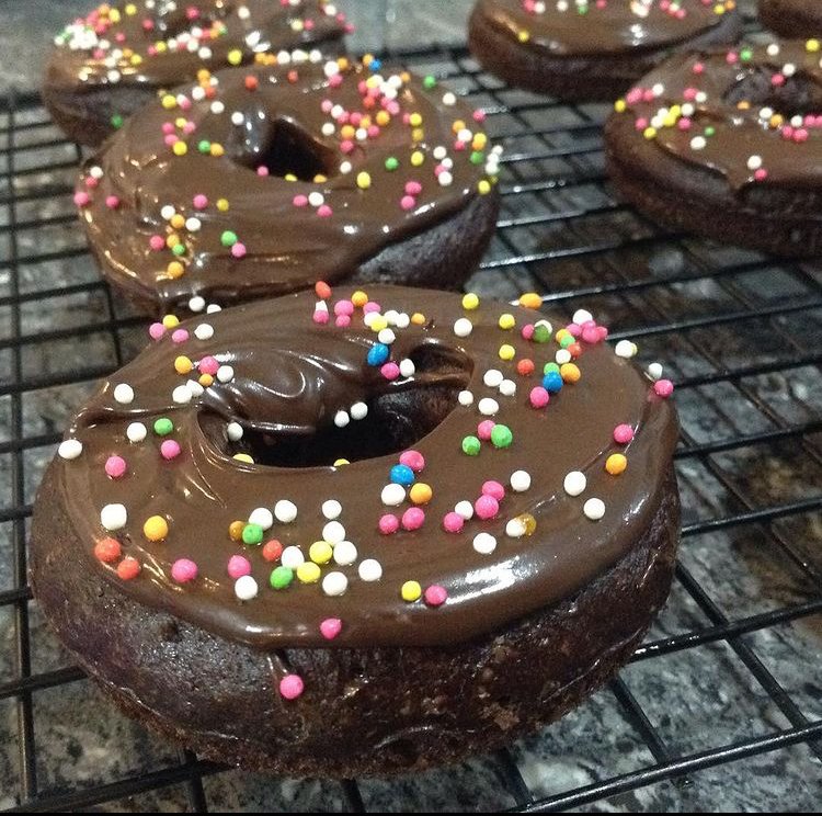 - Dip the tops of the cooled donuts into the chocolate glaze and then top with sprinkles.