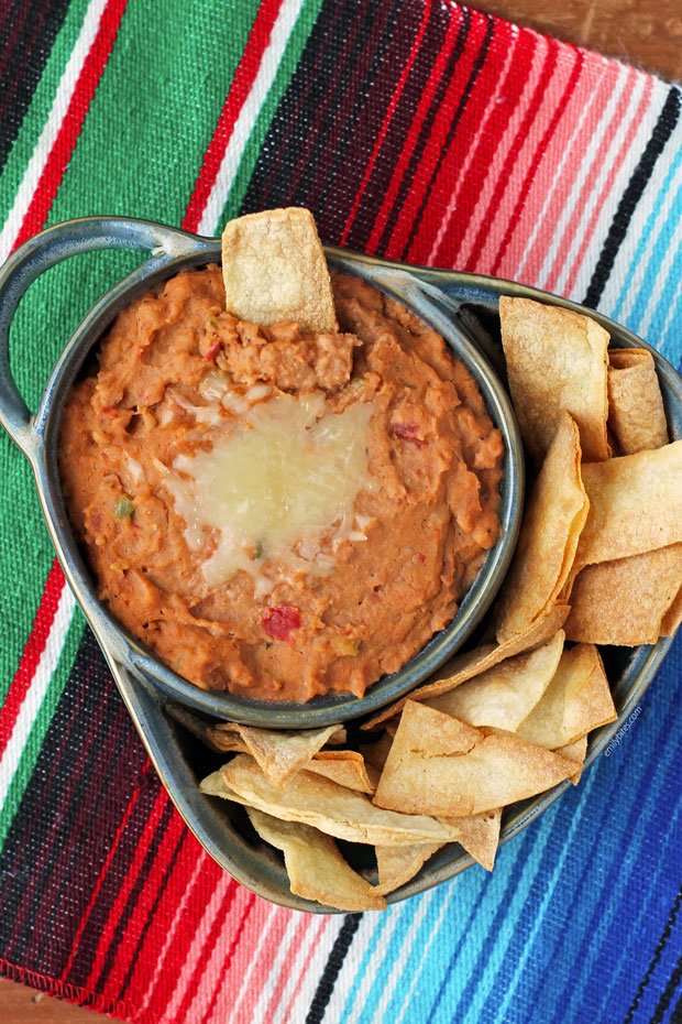 This Easy Cheesy Bean Dip uses just 4 ingredients and comes together in about 10 minutes!