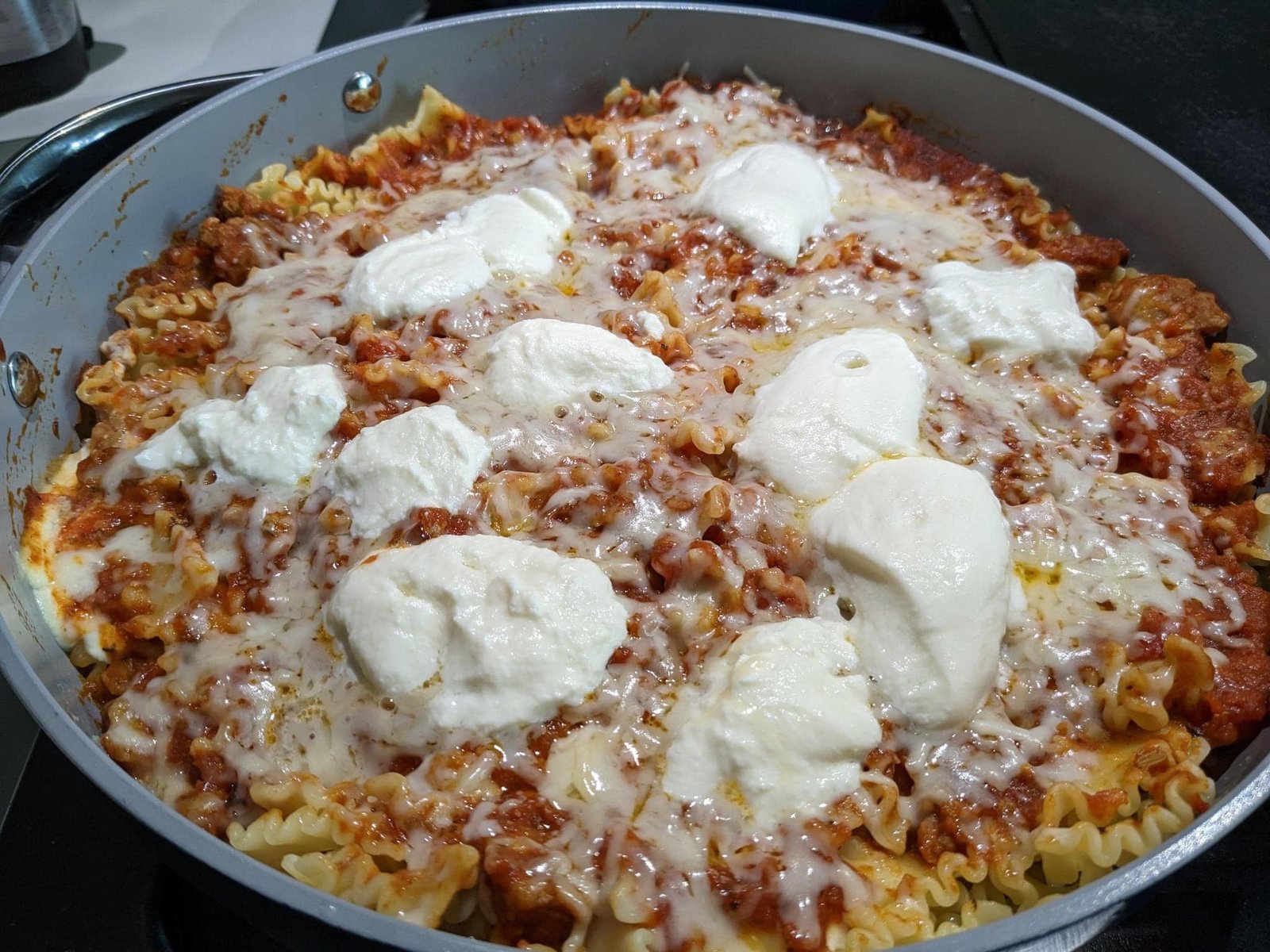 Using a tablespoon drop cheese mixture by the spoonful over cooked pasta. Cook for an additional 1-2 minutes until cheeses slightly melt.