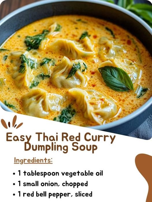 Enjoy your warm and comforting Thai red curry dumpling soup with a hint of spice and creamy coconut flavor!