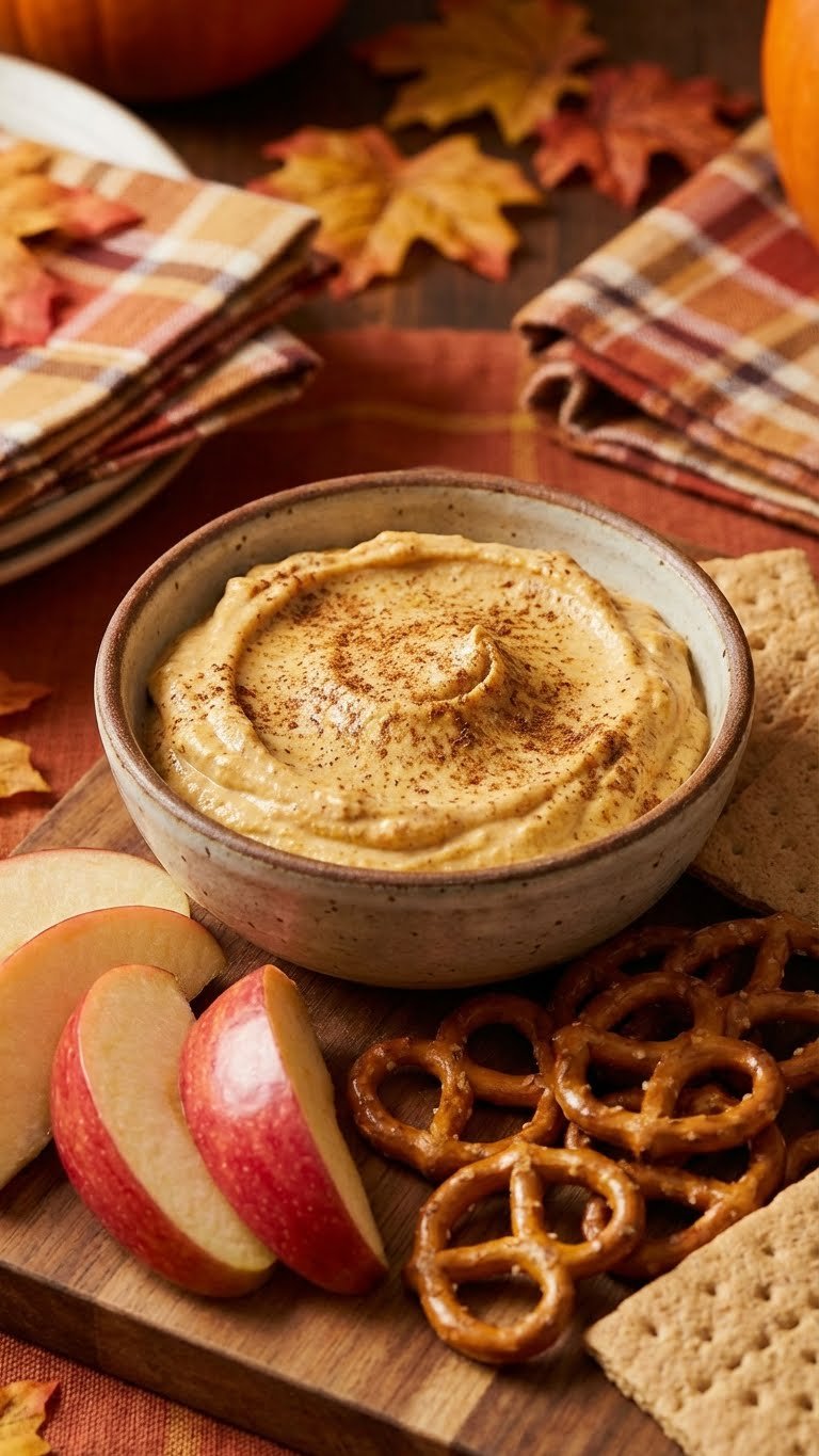 A smooth, fluffy dip with warm fall spices—perfect for apple slices, pretzels, or graham crackers. Ideal for autumn gatherings and snack boards.