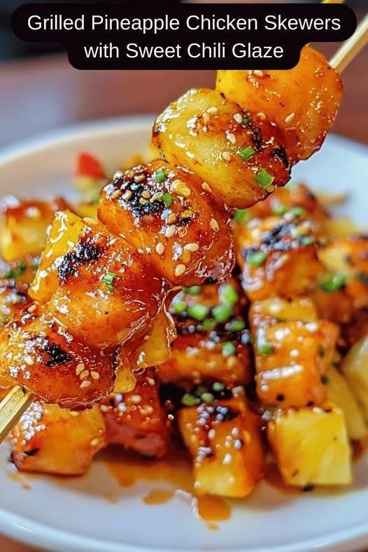 Grilled Pineapple Chicken Skewers with Sweet Chili Glaze 🍍🍗🔥