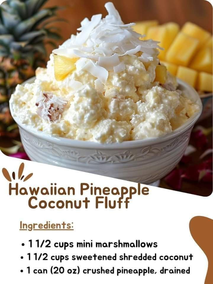 – Add sweetened shredded coconut, mini marshmallows, and drained pineapple tidbits to the bowl. Gently fold into the pineapple pudding mixture until evenly distributed.