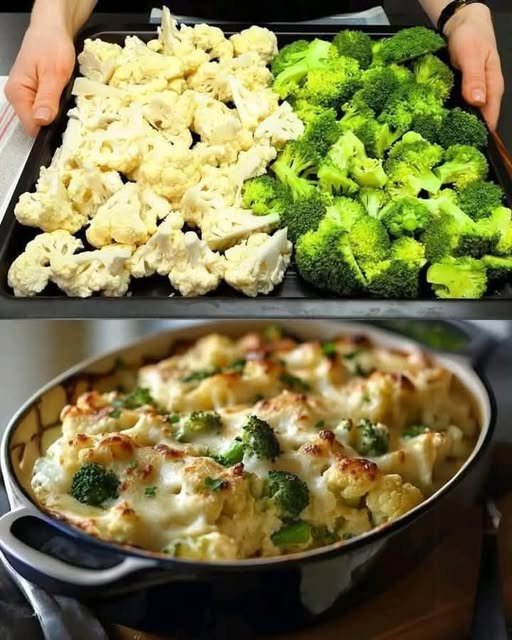 Place cauliflower and broccoli in a large saucepan. Cover with water and bring to a boil. Cook for 2-3 minutes, until the vegetables are crisp-tender. Drain well and set aside.