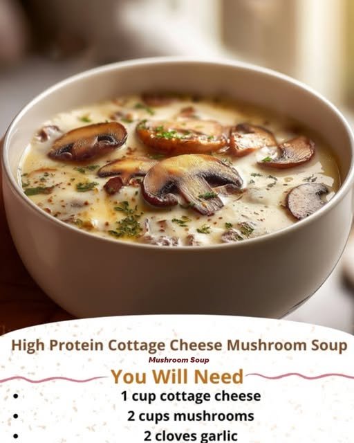 Mushroom soup has long been a comfort dish in many cuisines. This version updates the traditional recipe by using cottage cheese for a high-protein, lighter approach.