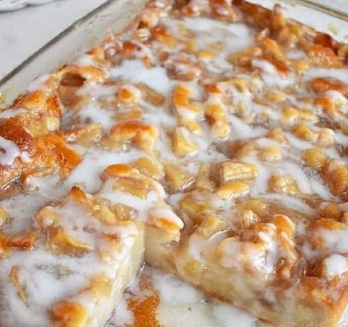 - Spoon the no-sugar-added apple pie filling on top of the batter, covering the entire surface.