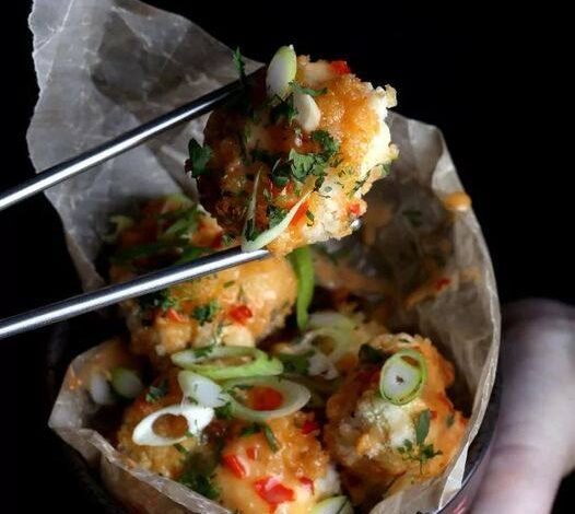 - While the cauliflower is baking, prepare the sauce by mixing the Greek yogurt, light mayonnaise, sweet chili sauce, sriracha, and lime juice in a bowl. Adjust the sriracha to your desired level of spiciness.