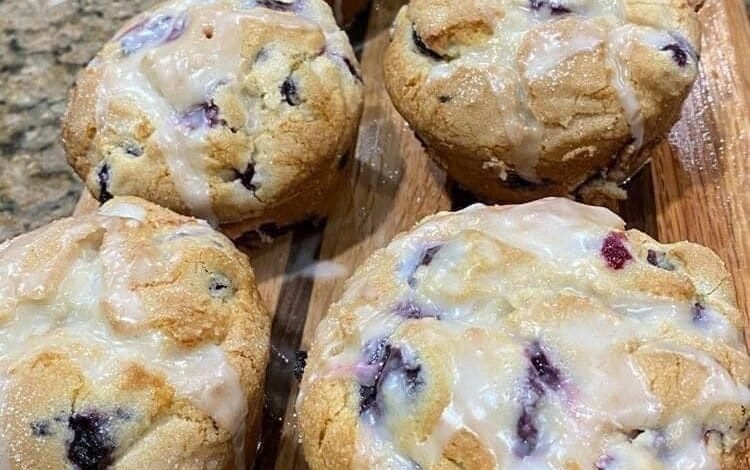 Gently fold in your blueberries, and divide batter over your 12 muffin cups.