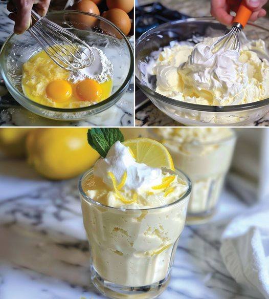 Once chilled, divide the lemon cream mixture into serving glasses or bowls.