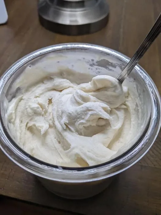 Milk -for the re-spin. I recommend using whole milk-skim and unsweetened almond milk doesn’t contain a lot of fat which makes the ice cream more icy than creamy. If you are wanting a creamy ice cream than I recommend using 1 Tbsp of whole milk.