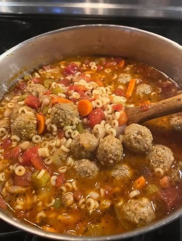 _A hearty, comforting soup filled with homemade meatballs, vegetables, and pasta._