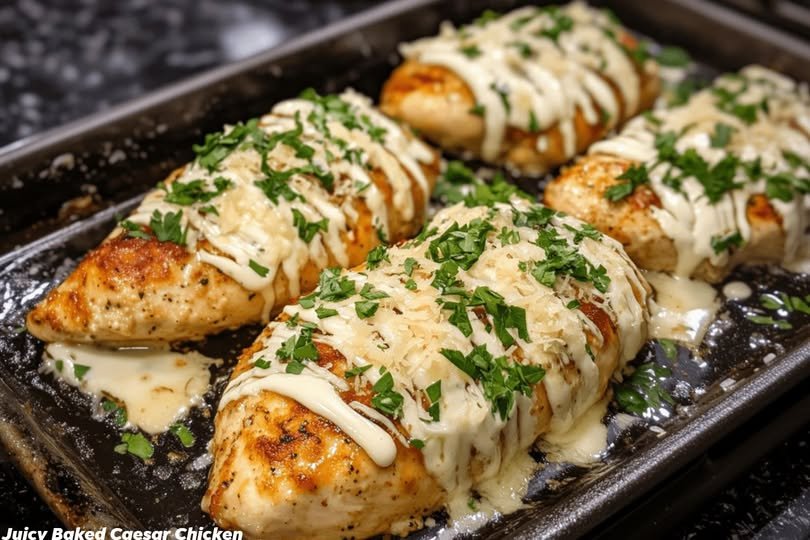 juicy Baked Caesar Chicken with Parmesan Sauce Recipe