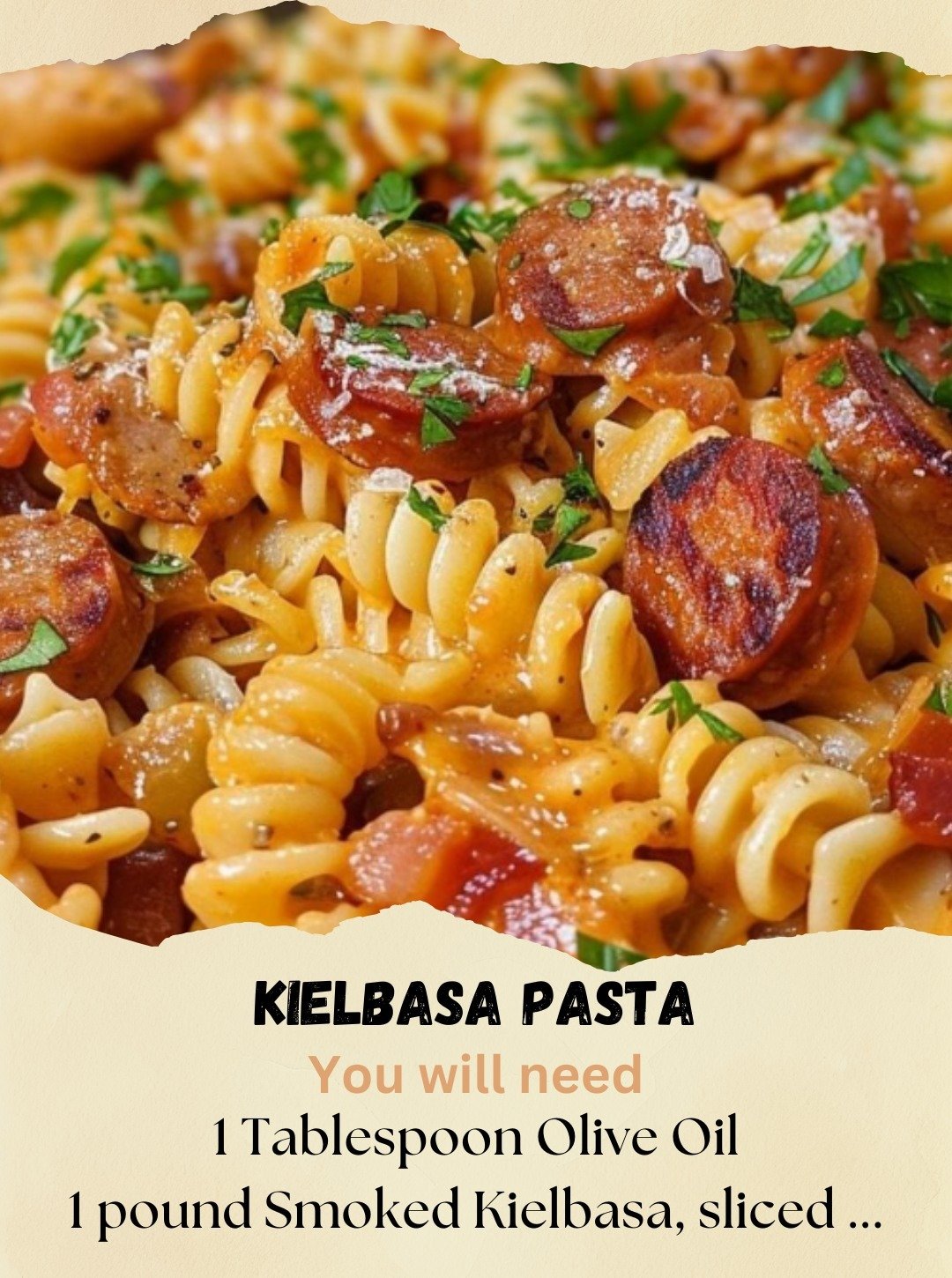 Heat the olive oil in a large deep saucepan over medium-high heat. Add in the sliced Kielbasa and onions, cooking for 5-6 minutes until the sausage is browned and onions are soft.