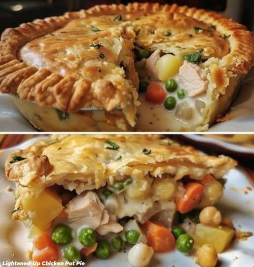 Golden flaky crust on top… creamy chicken, peas, carrots, and potatoes inside — just like the picture