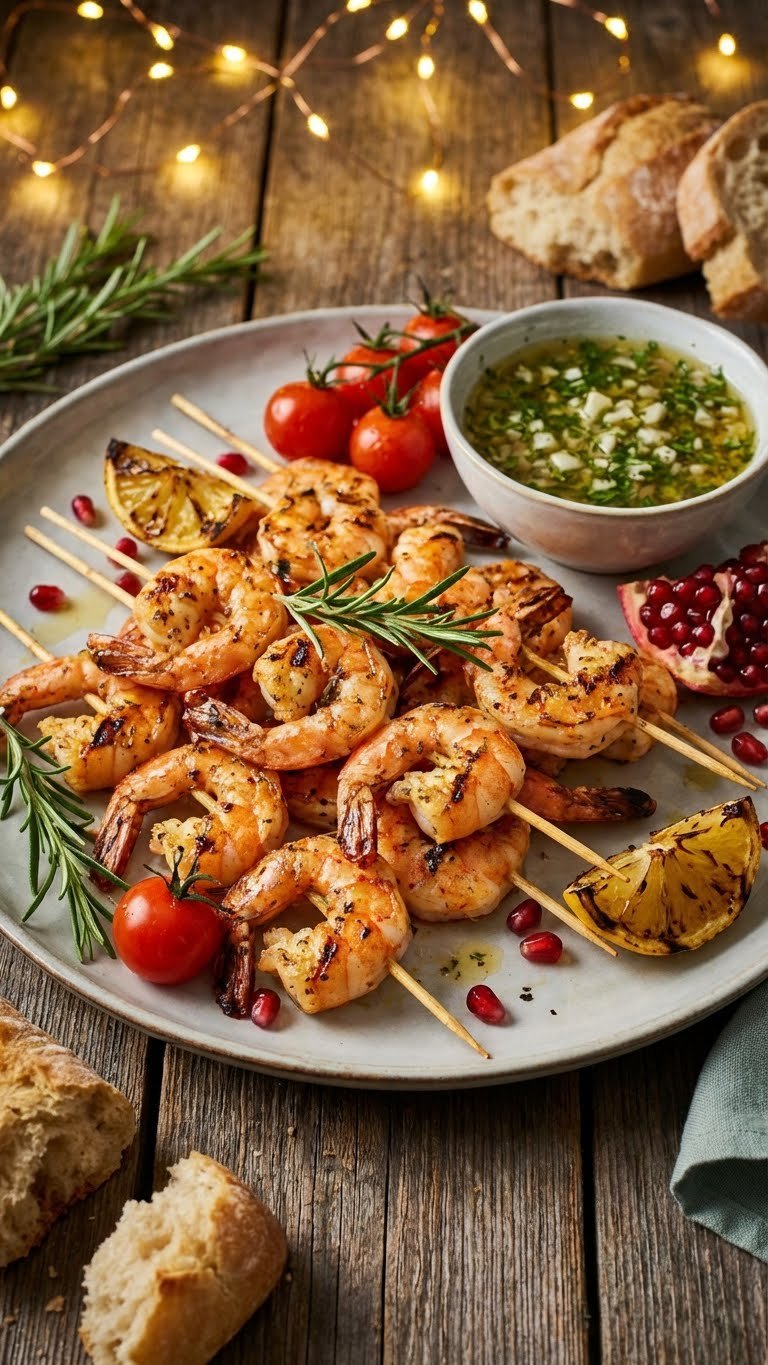 Juicy shrimp marinated in olive oil, garlic, lemon, and Mediterranean herbs, then grilled or baked until lightly charred and bursting with fresh flavor.