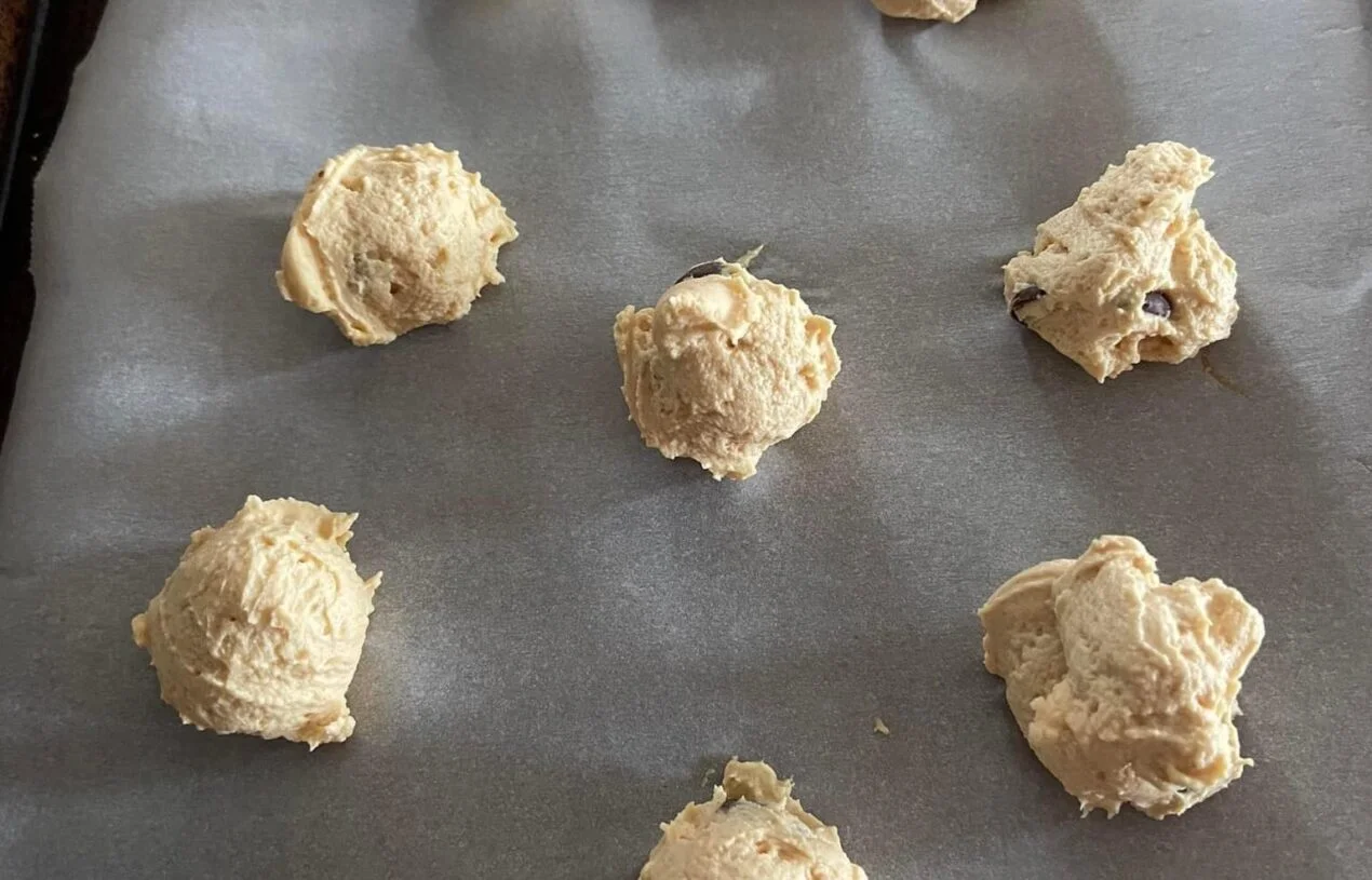 5. Using a cookie scoop or your hands, portion out the dough and roll it into bite-sized balls. Place each ball on the prepared baking sheet, allowing ample space between them.