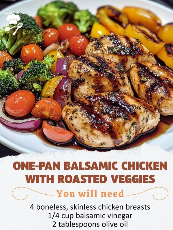 Here’s a delicious recipe for One-Pan Balsamic Chicken with Roasted Veggies, along with its SmartPoints value. This dish is not only flavorful but also easy to prepare, making it perfect for a weeknight dinner.