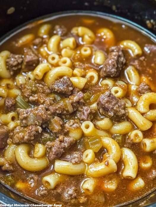 his One-Pot Macaroni Cheeseburger Soup is the perfect blend of comfort food favorites—juicy ground beef, tender pasta, and creamy, cheesy goodness—all simmered together in a single pot for an easy, satisfying meal.